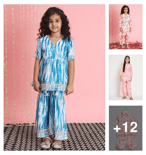 girls printed kurta and dhoti set
