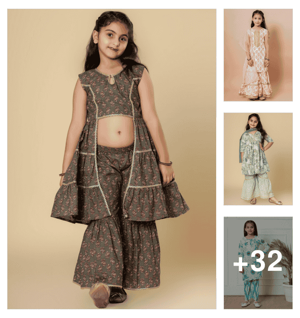 girls sequined kurta and sharara with dupatta