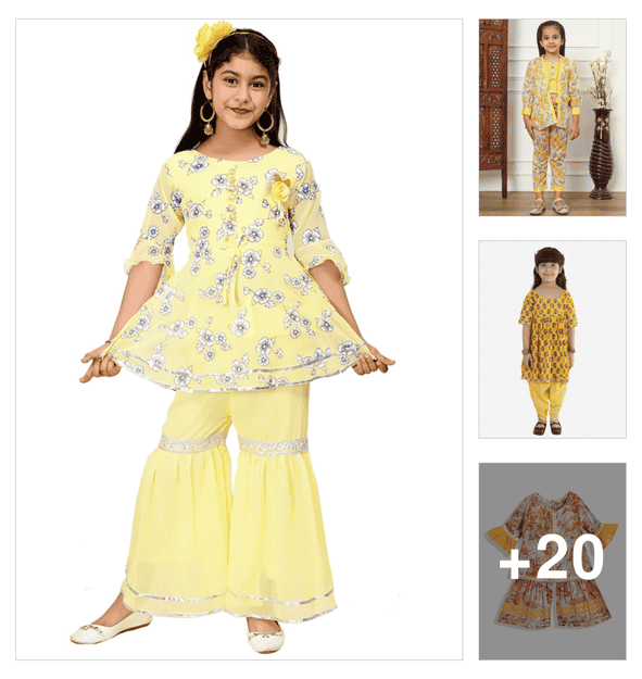 girls printed kurta and sharara set