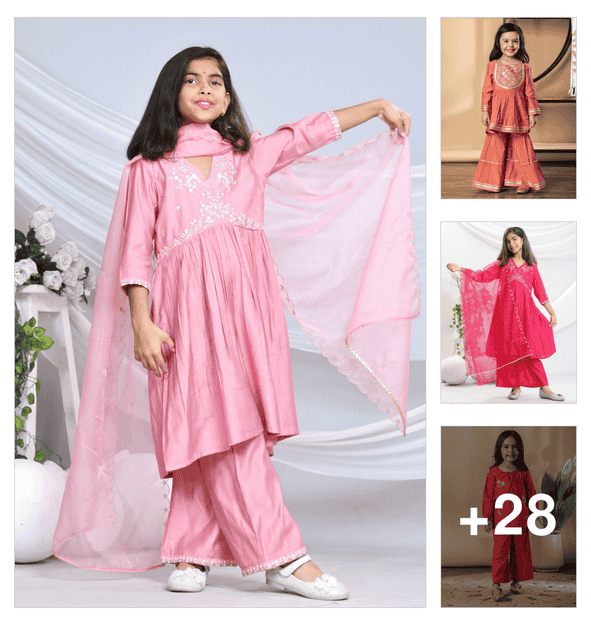 girls embroidered kurta and salwar set with dupatta