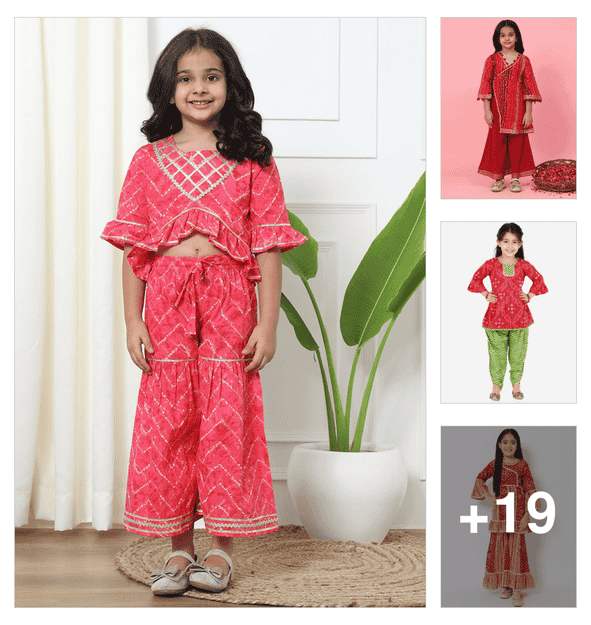 girls printed kurta and dhoti set