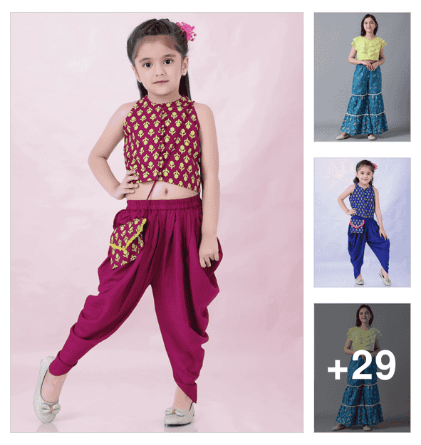 girls printed kurta and dhoti set