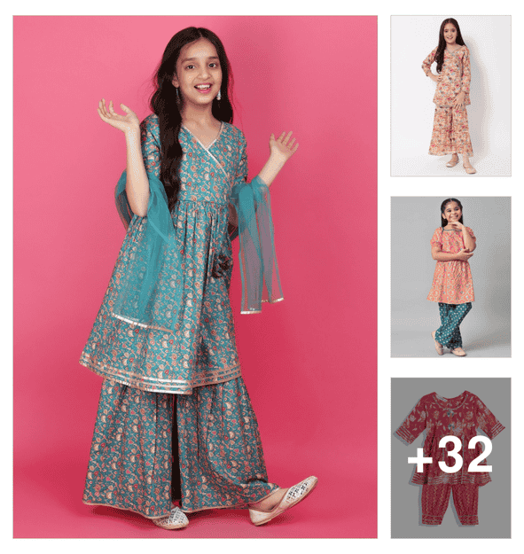 girls printed kurta and sharara set