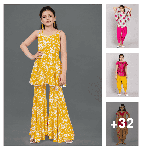 girls three quarter sleeve kurta palazzo with dupatta set