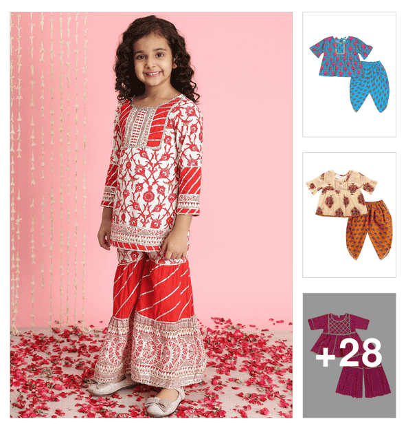 girls printed kurta sharara set with  dupatta