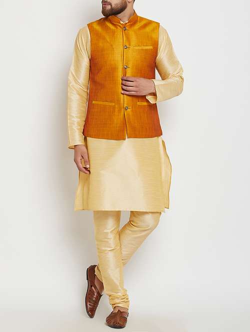 gold and mustard dupion ethnic wear set - 14794172 - Very Small Image - 1