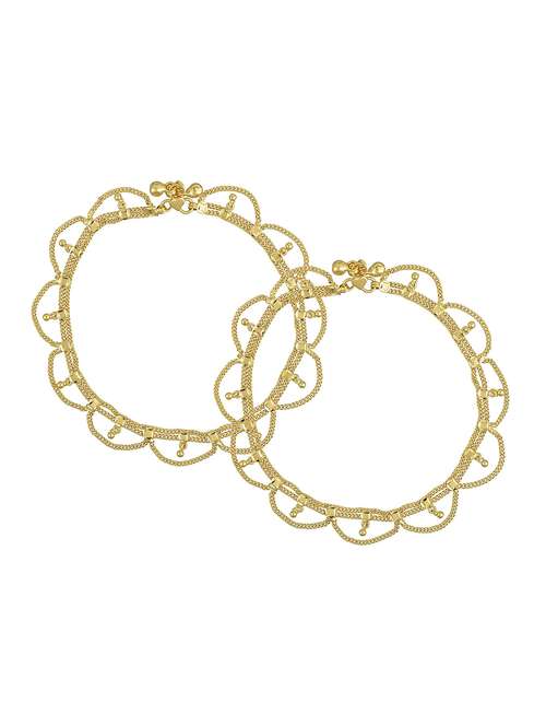 • Decorate your ankle with the great selection of anklets and payals in gold colours crafted with brass materials to make a striking style statement.