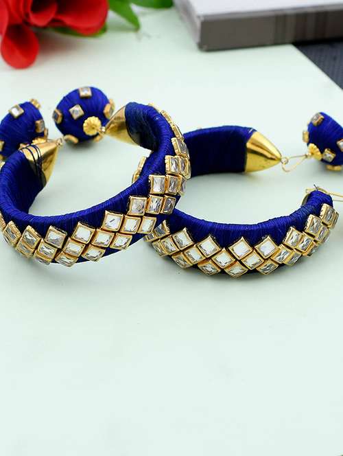 Trendy & Stylish Jaipuri Blue Gold-Plated Stone-Studded Handcrafted Bangles