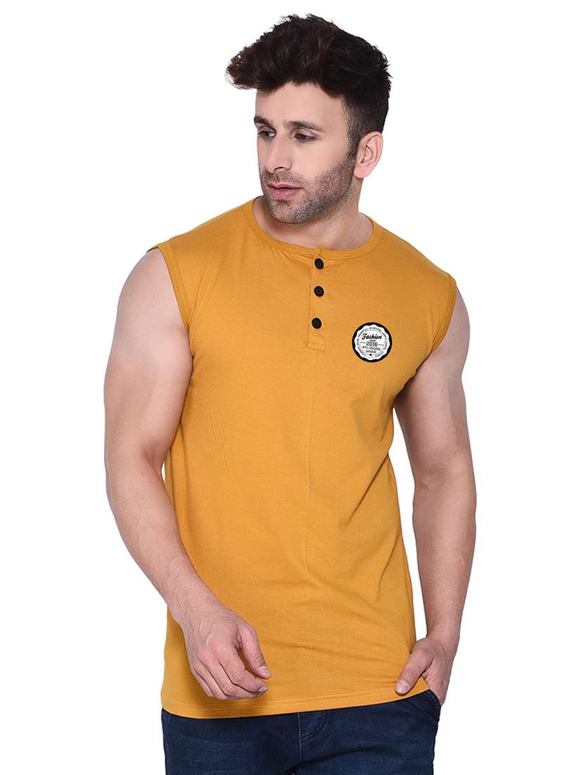 - » mustard solid cotton blend t-shirt