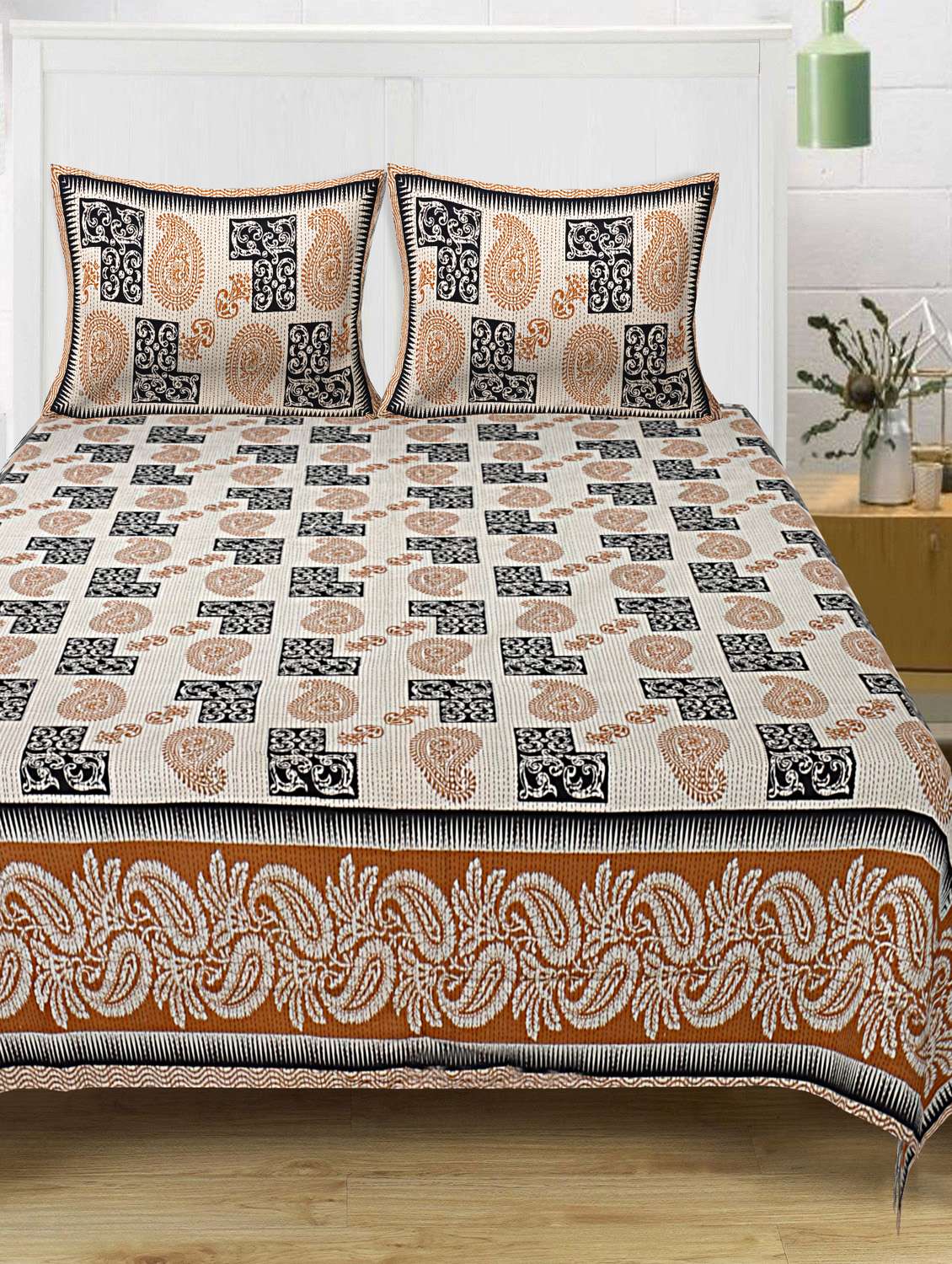 cotton kantha look jaipuri print super king size bedsheet with 2 pillow covers