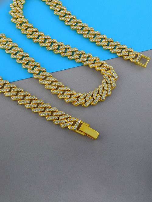 Elevate your style with this premium Men’s Cuban Link Necklace, crafted from pure, thick, heavy brass and encrusted with sparkling imitation diamonds for a bold, luxurious finish. Designed to make a statement, this necklace blends traditional richness with modern flair—perfect for engagements, weddings, festive occasions, or formal events. Its macho and elegant look adds instant charisma to any outfit, making it a must-have for fashion-forward men who appreciate timeless style. Whether you're dressing for a grand celebration or gifting someone special, this necklace delivers unmatched sophistication and masculine energy.
