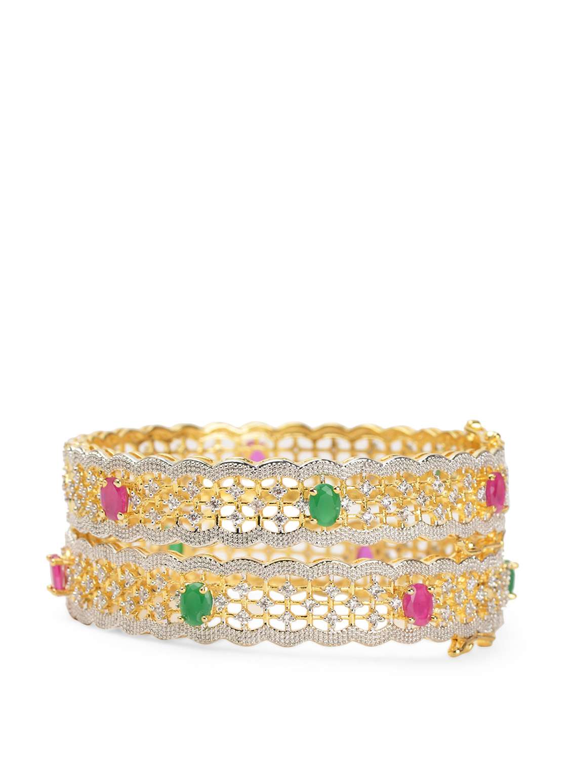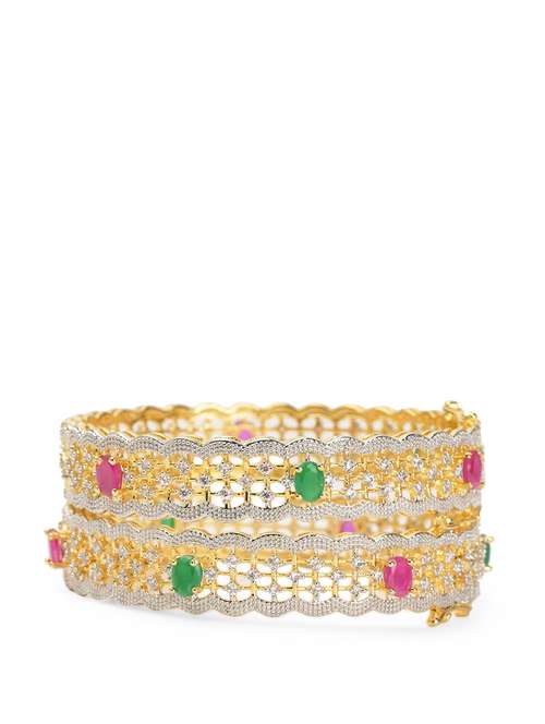 - » gold plated crystal studded bangles with kundan stones(set of 2)