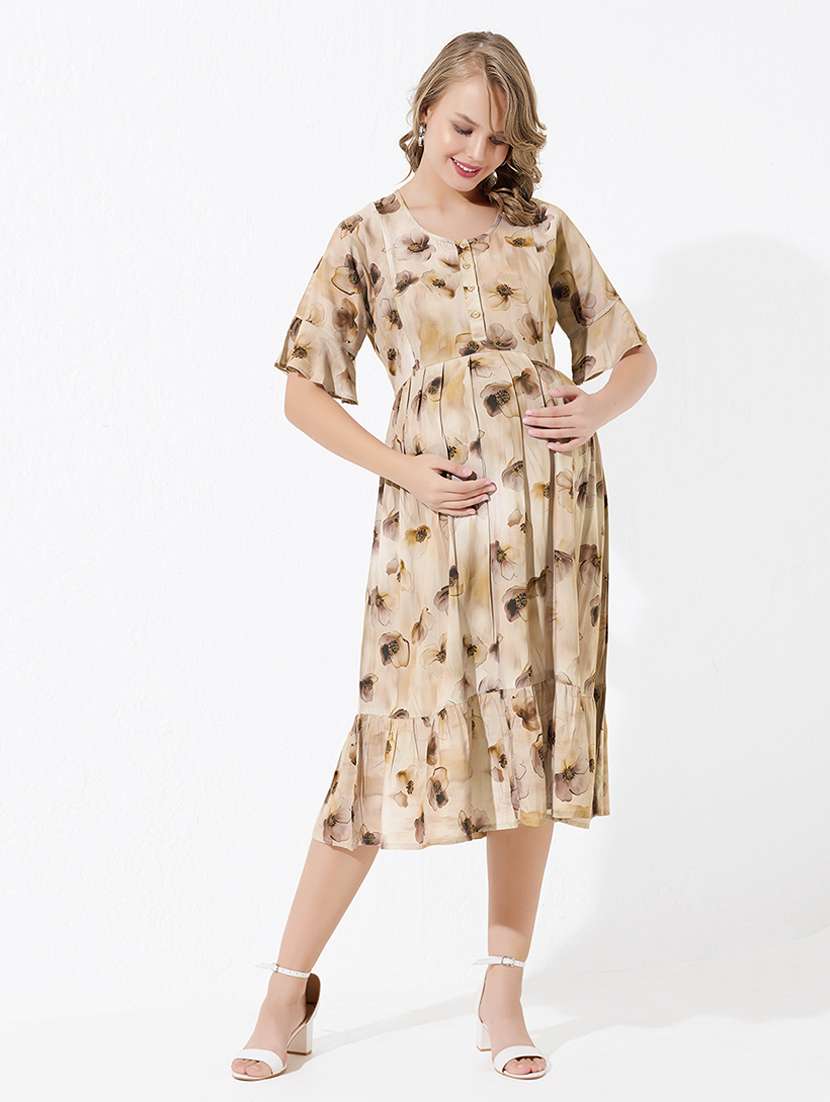 Quira Women's Printed Knee Length Maternity Dress