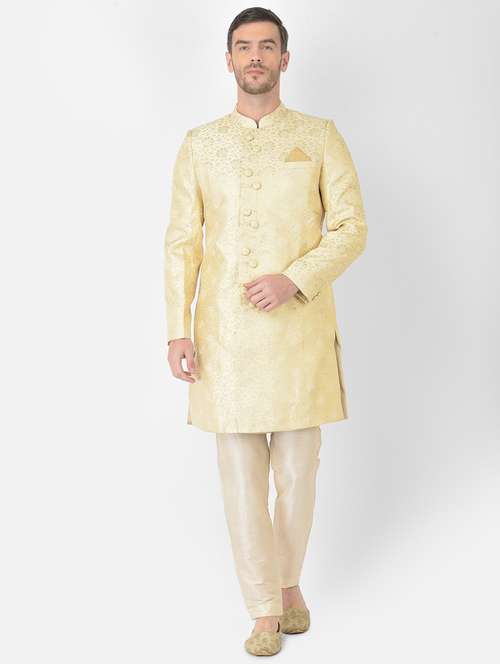 - » golden self-designed sherwani ethnic wear set