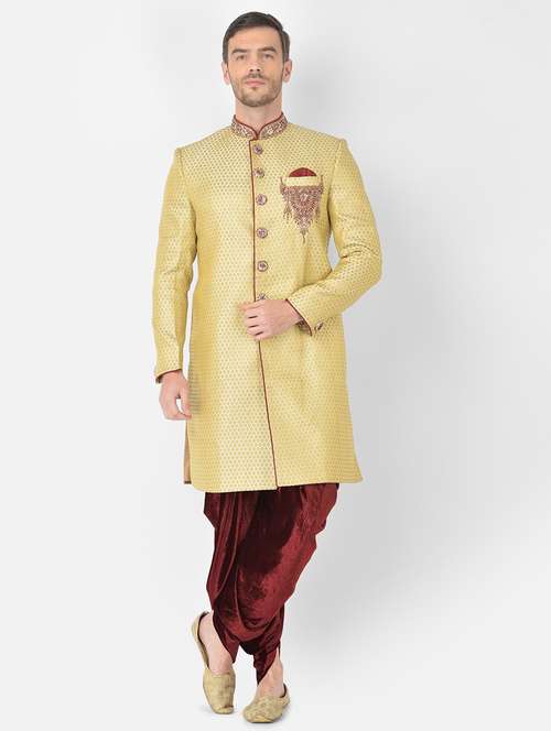- » golden self-designed sherwani ethnic wear set