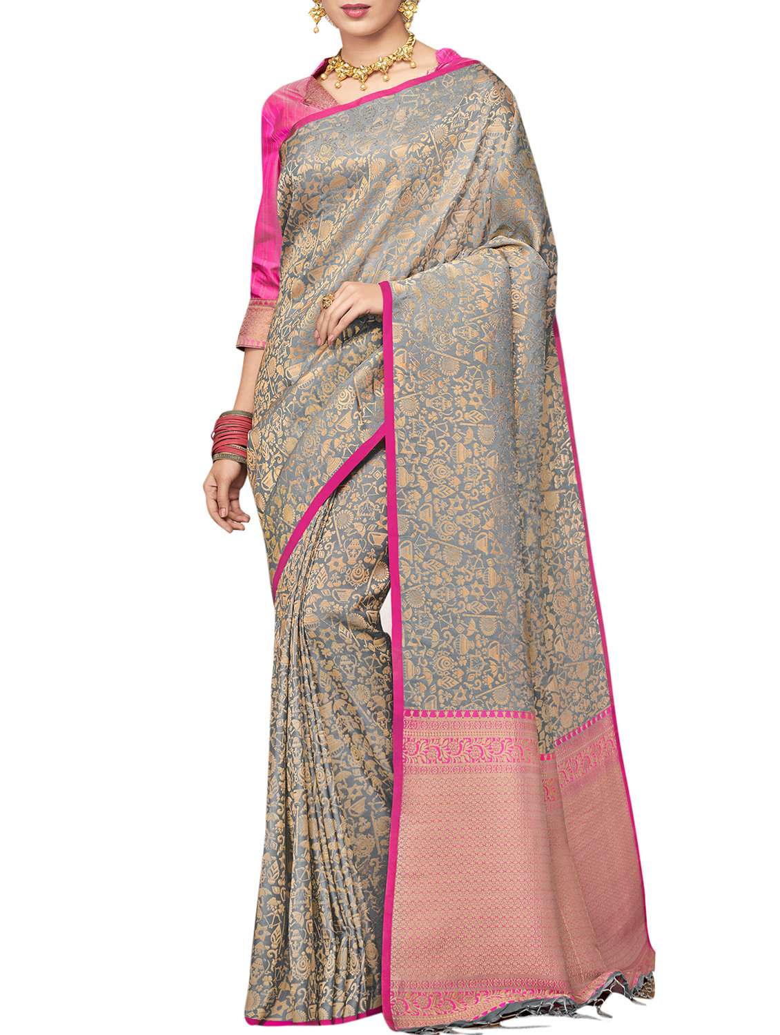 - » ethnic motifs grey woven saree with blouse