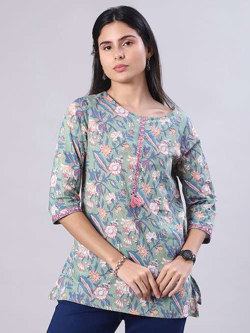 - » women printed three quarter sleeve kurti