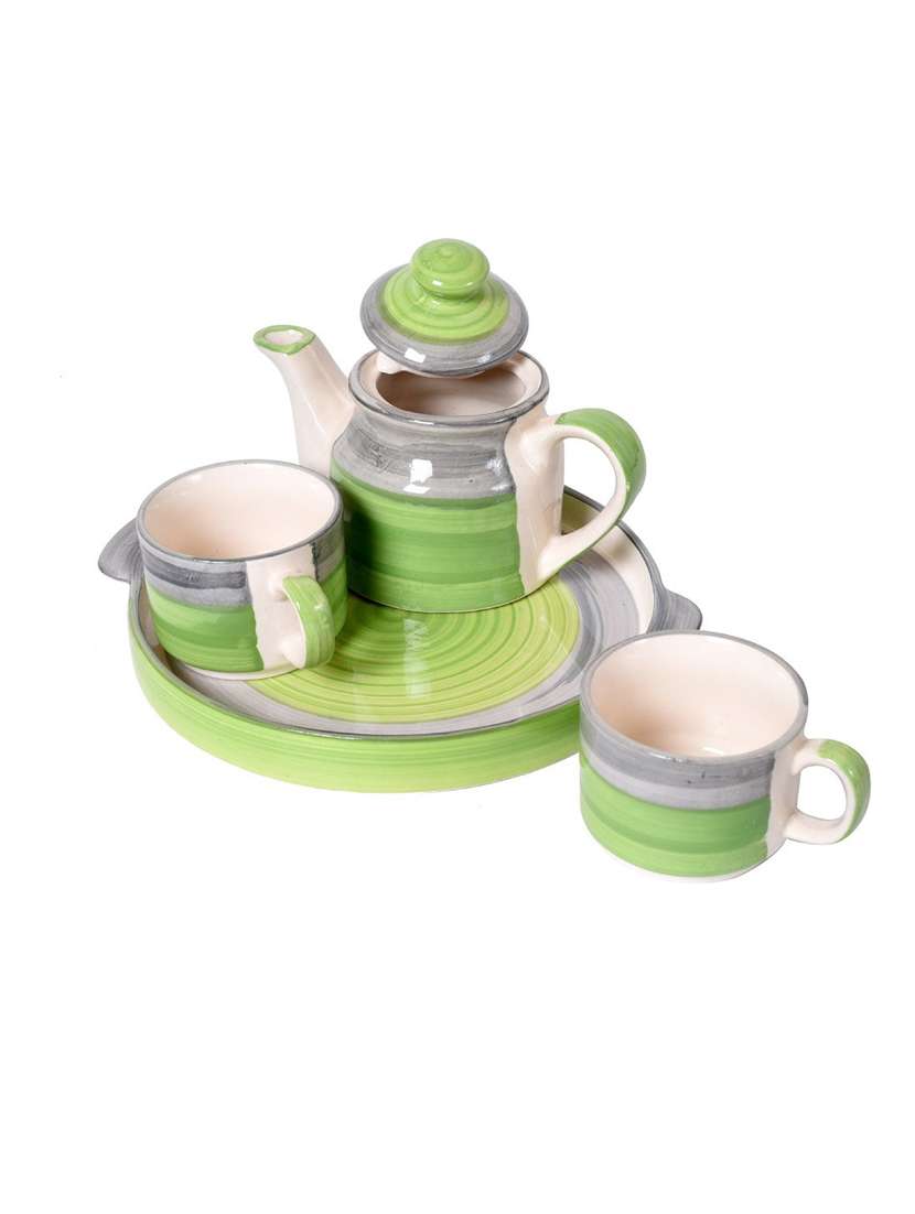 - » unravel india handmade elegant horizontal pattern tea tray set (4pc)