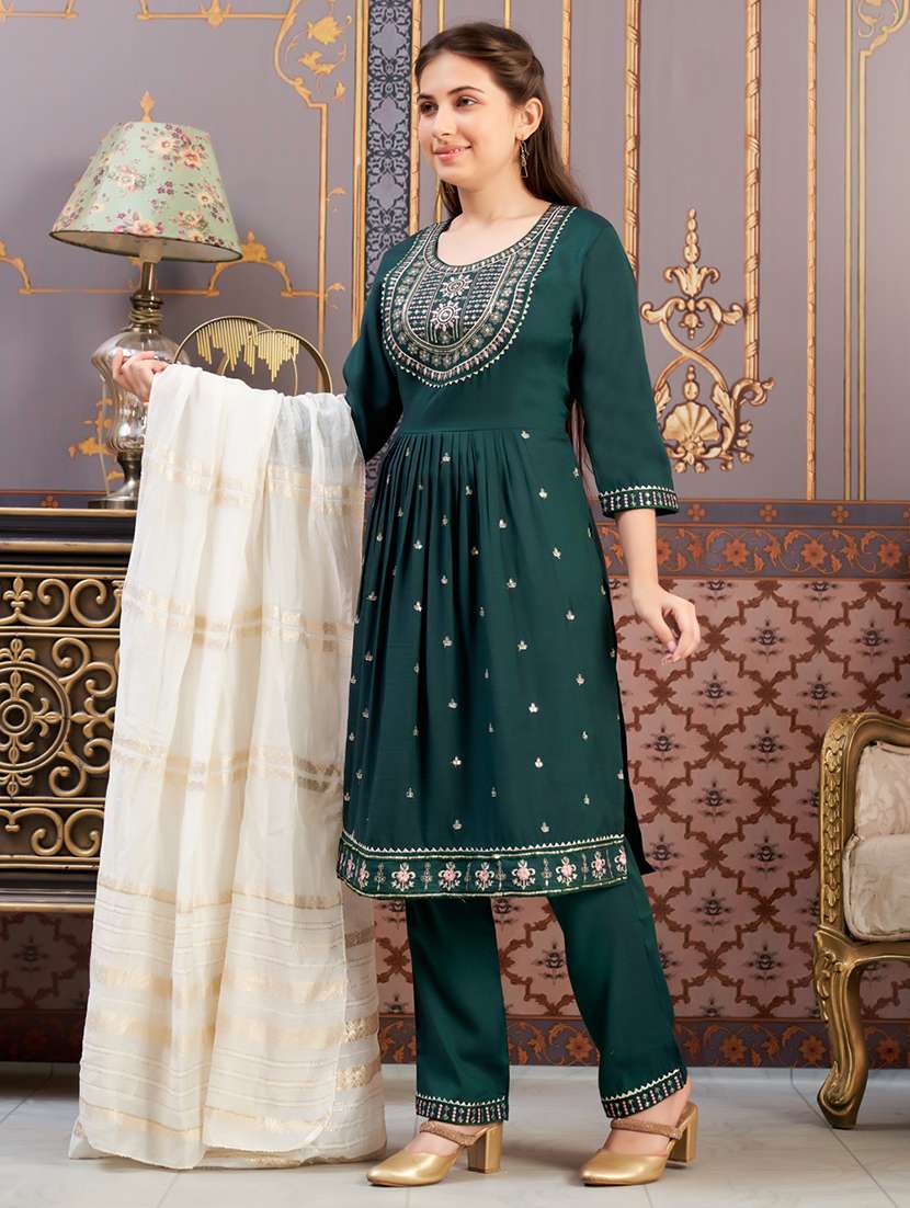 - Check our astonishingly stylish scope of ethnic wear for girls from Aarika available in green colours.