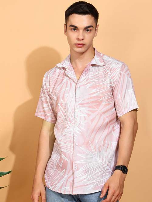 - » men printed short sleeve regular fit casual shirt