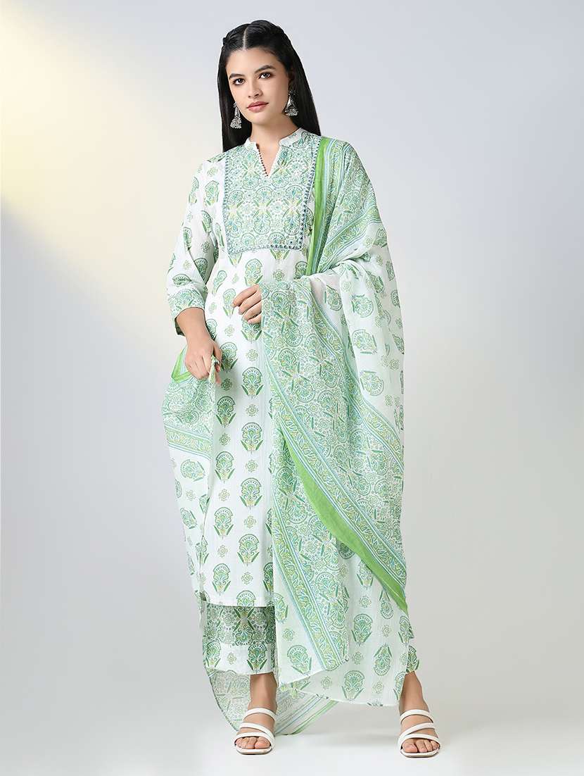 women printed kurta pant set with dupatta