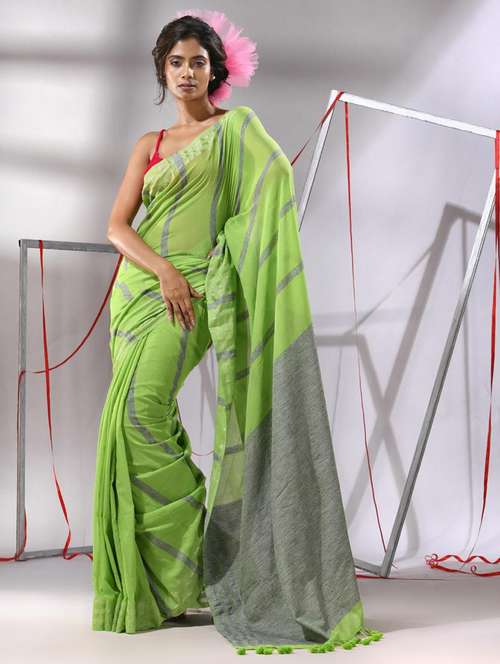 - » women green handloom saree with blouse