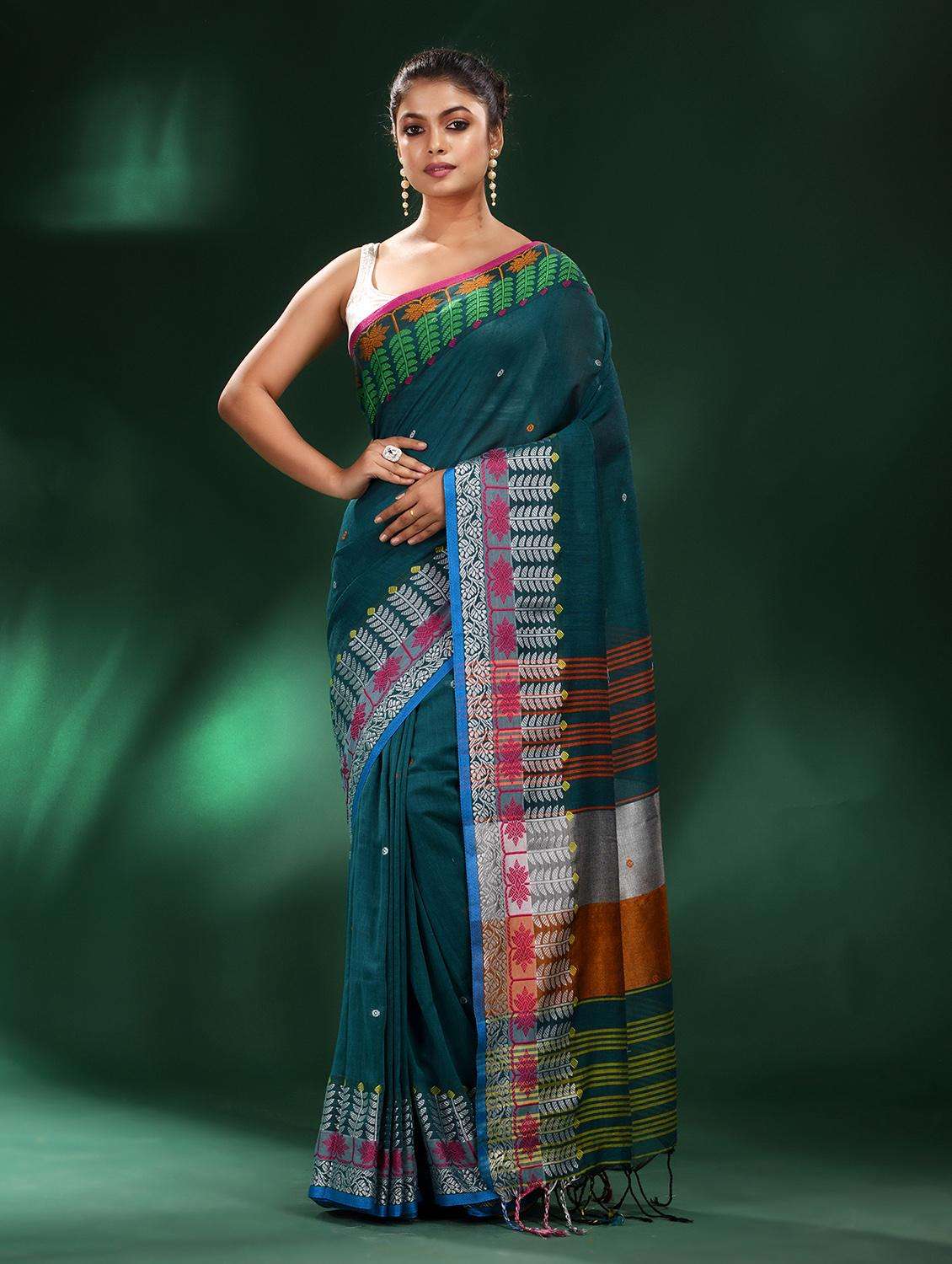 Look glamorous and alluring in this red matka silk handwoven saree. It has plain all over with zari and the borders have geometric patterns.