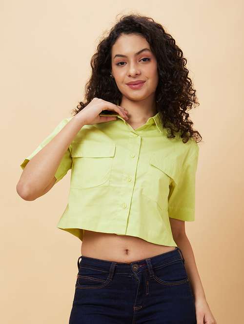 Globus presents these fashionable and classy Women Lime Solid Casual Shirt Collar Top. Made with superior quality skin friendly Cotton fabric for comfort of wearing. The Casual Top are sure to keep you looking stylish and feeling comfortable through the day. So go ahead, stand apart from the crowd and create your own trends.