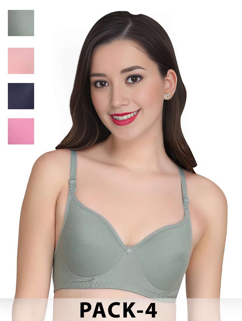 Liigne Women Everyday Non Padded Bra (Pack Of 4) - Made of Pure Cotton Full Coverage Non Wired Pushup Soft Cup for T-Shirt Saree Dress Sports Garment for Daily Use Everyday