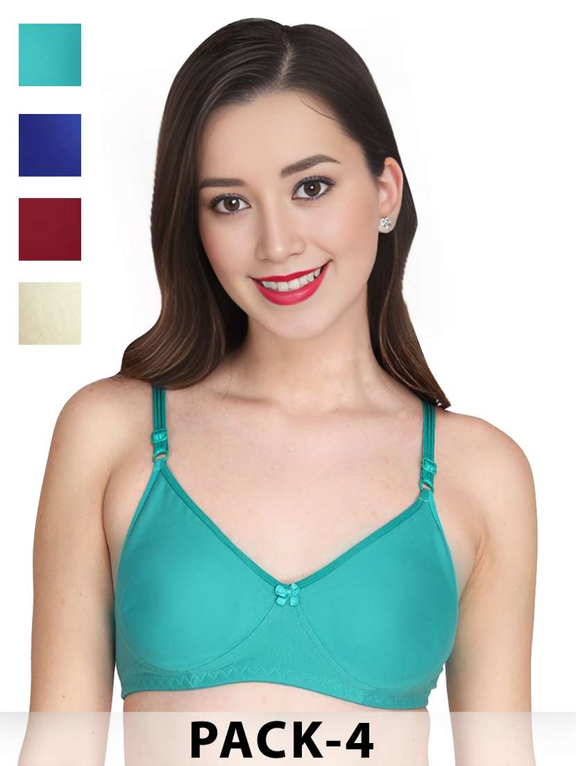 women pack of 4 solid non wired bra