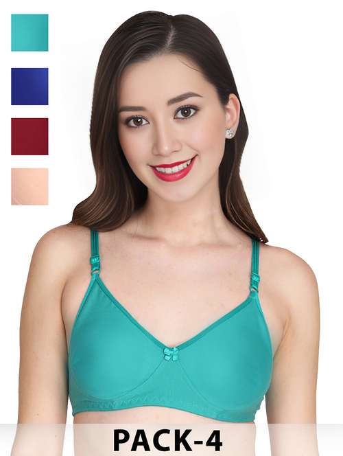 Liigne Women Everyday Non Padded Bra (Pack Of 4) - Made of Pure Cotton Full Coverage Non Wired Pushup Soft Cup for T-Shirt Saree Dress Sports Garment for Daily Use Everyday