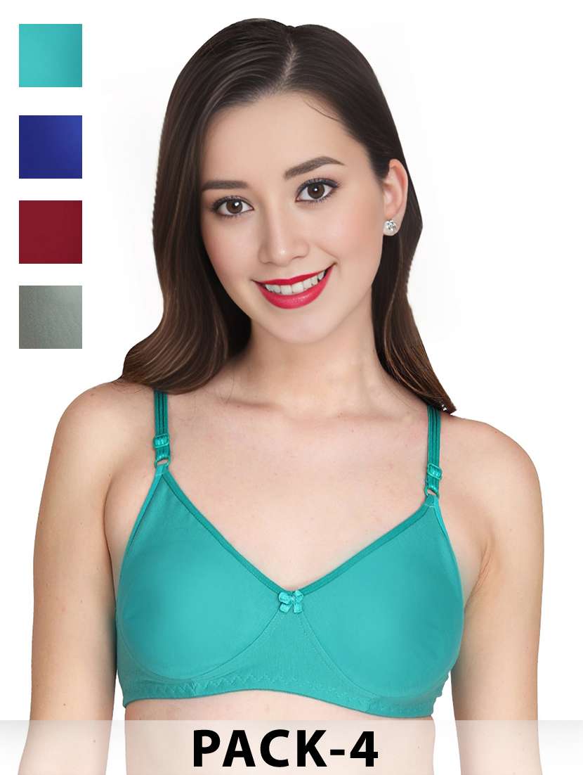 Liigne Women Everyday Non Padded Bra (Pack Of 4) - Made of Pure Cotton Full Coverage Non Wired Pushup Soft Cup for T-Shirt Saree Dress Sports Garment for Daily Use Everyday
