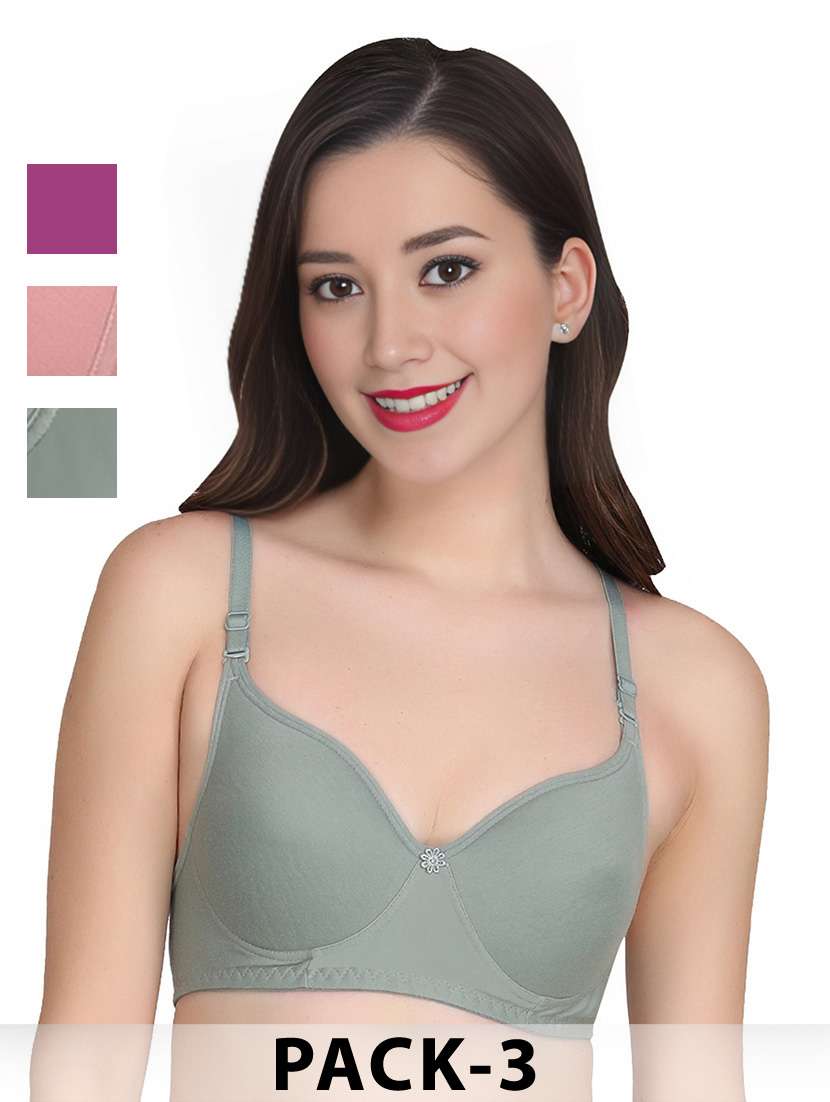 Liigne Women Everyday Non Padded Bra (Pack Of 3) - Made of Pure Cotton Full Coverage Non Wired Pushup Soft Cup for T-Shirt Saree Dress Sports Garment for Daily Use Everyday