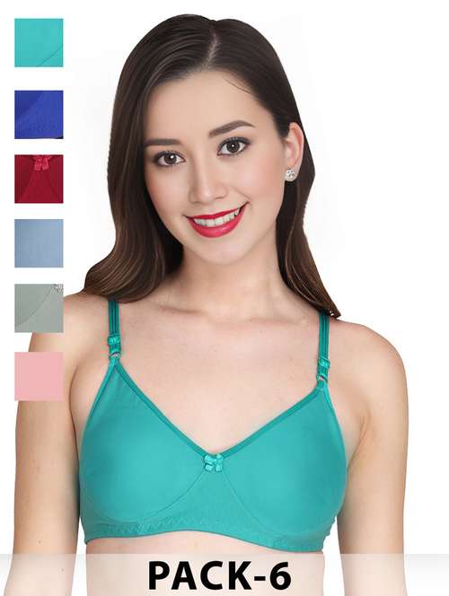 Liigne Women Everyday Padded Bra (Pack Of 6) - Made of Pure Cotton Full Coverage Non Wired Pushup Soft Cup for T-Shirt Saree Dress Sports Garment for Daily Use Everyday