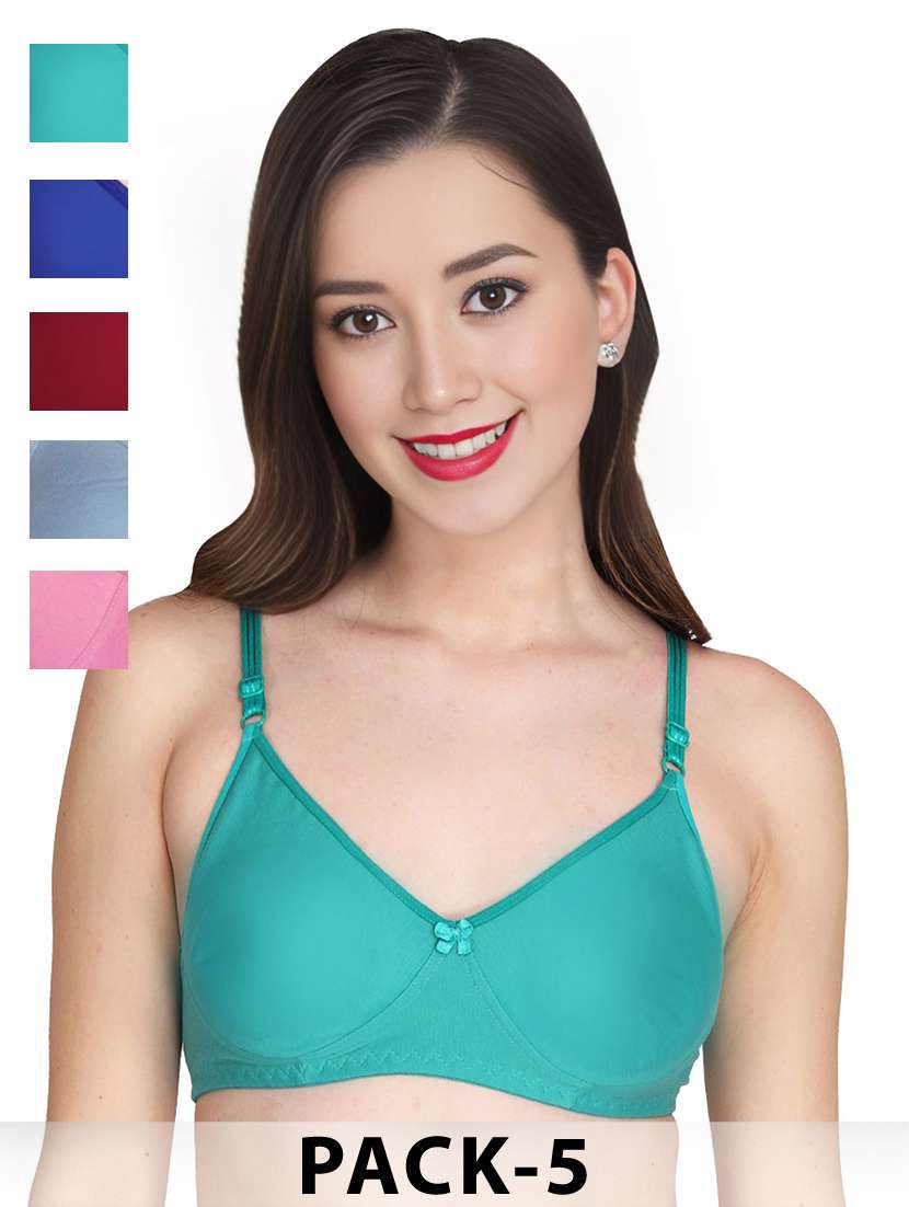 Liigne Women Everyday Padded Bra (Pack Of 5) - Made of Pure Cotton Full Coverage Non Wired Pushup Soft Cup for T-Shirt Saree Dress Sports Garment for Daily Use Everyday