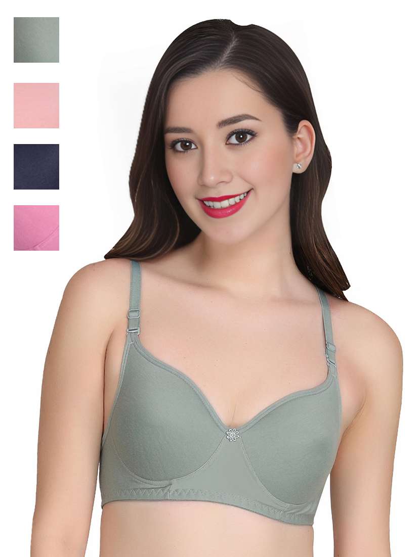 Liigne Women Everyday Padded Bra (Pack Of 4) - Made of Pure Cotton Full Coverage Non Wired Pushup Soft Cup for T-Shirt Saree Dress Sports Garment for Daily Use Everyday