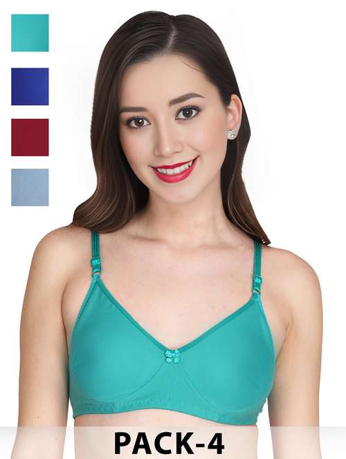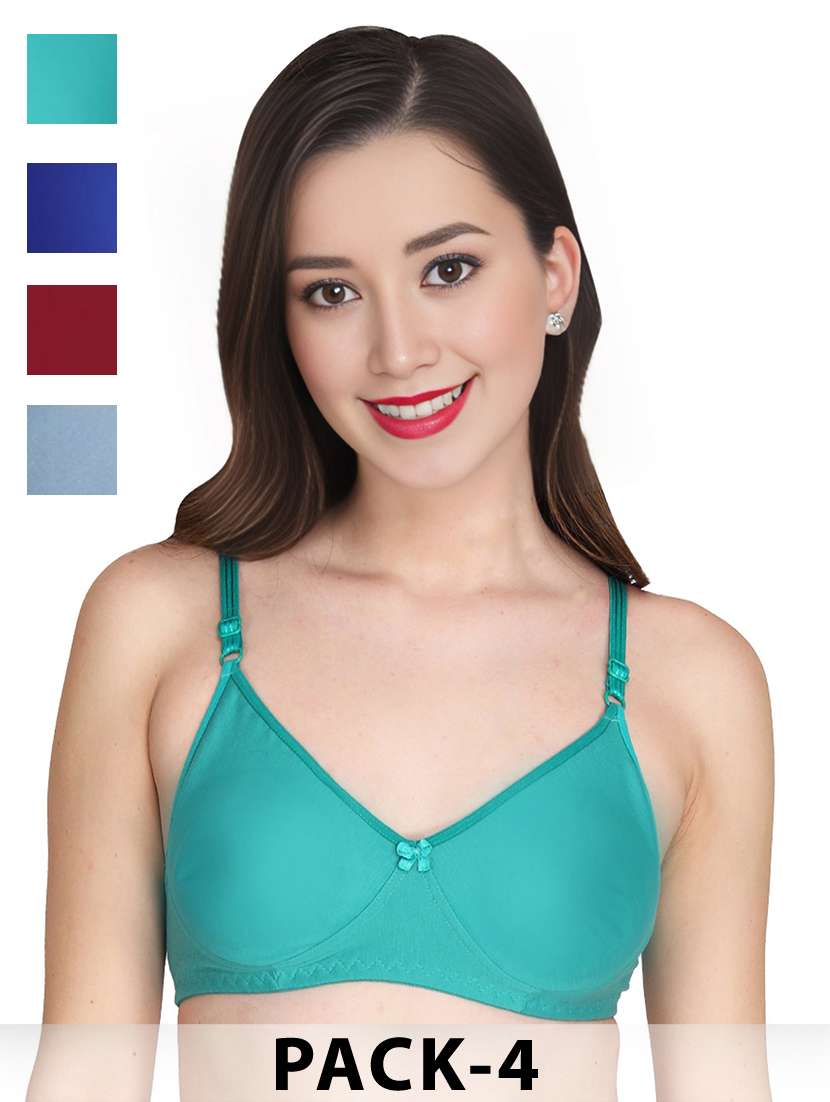 Liigne Women Everyday Padded Bra (Pack Of 4) - Made of Pure Cotton Full Coverage Non Wired Pushup Soft Cup for T-Shirt Saree Dress Sports Garment for Daily Use Everyday
