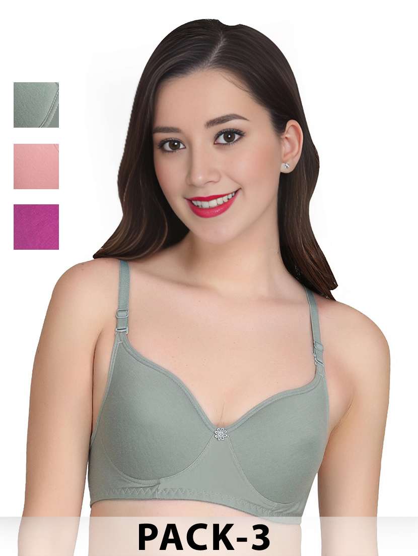 Liigne Women Everyday Padded Bra (Pack Of 3) - Made of Pure Cotton Full Coverage Non Wired Pushup Soft Cup for T-Shirt Saree Dress Sports Garment for Daily Use Everyday