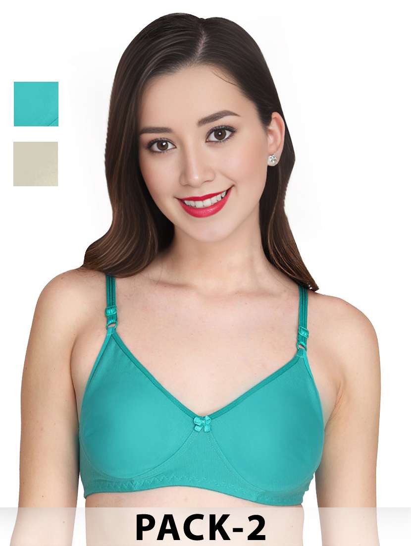 Liigne Women Everyday Padded Bra (Pack Of 2) - Made of Pure Cotton Full Coverage Non Wired Pushup Soft Cup for T-Shirt Saree Dress Sports Garment for Daily Use Everyday
