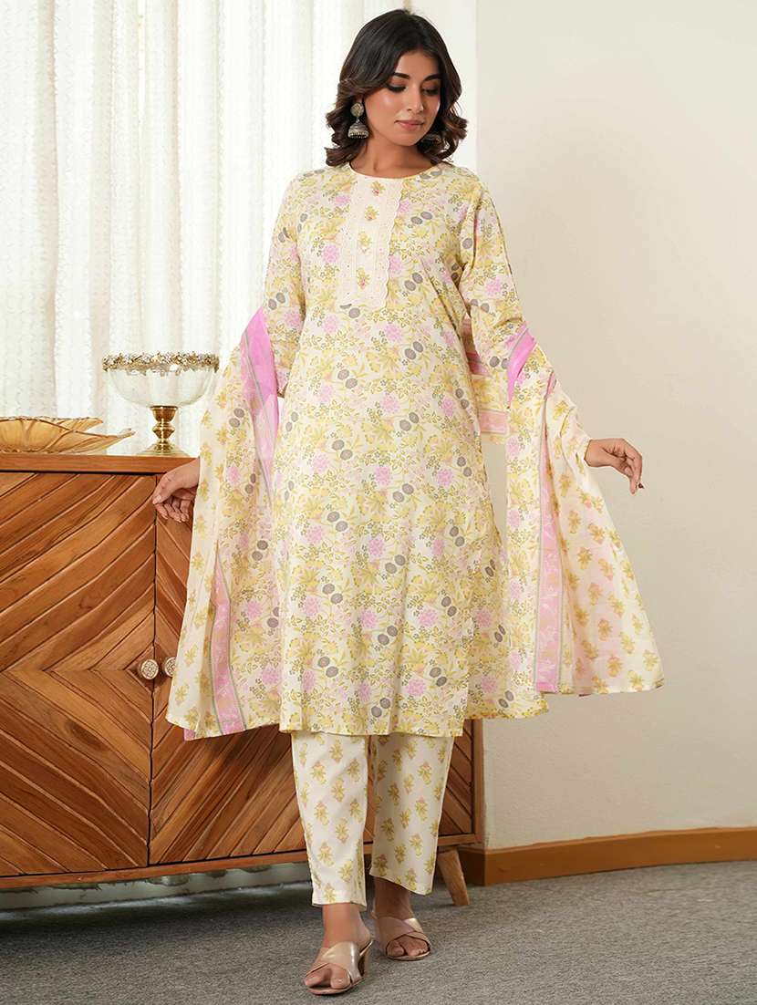 - » women floral print kurta and pant with dupatta set