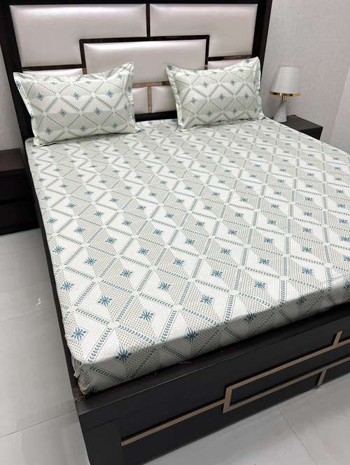 printed tc fitted king-sized bedsheet with 2 pillow covers