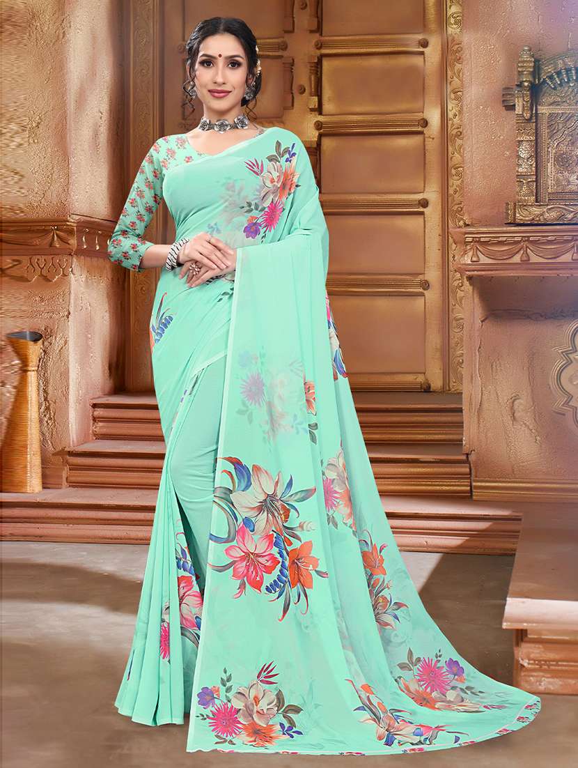 floral printed saree with blouse - 19506115 - Very Small Image - 1
