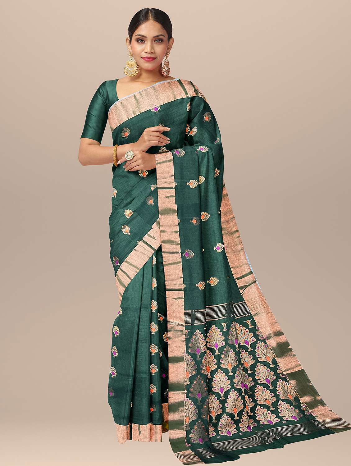 - » women green self design handloom saree with blouse