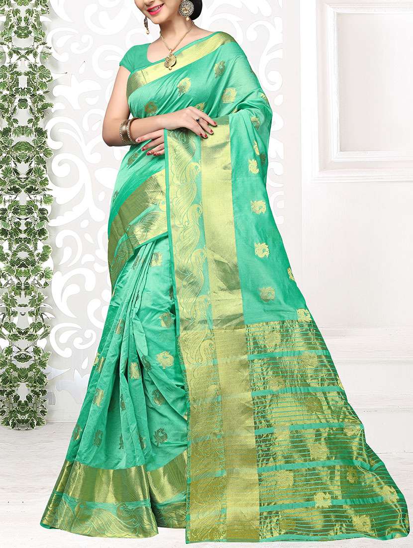 - » turquoise cotton silk kanjivaram saree with blouse