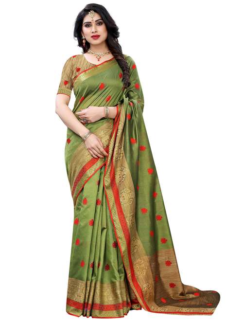 - » women green self design cotton silk saree with blouse