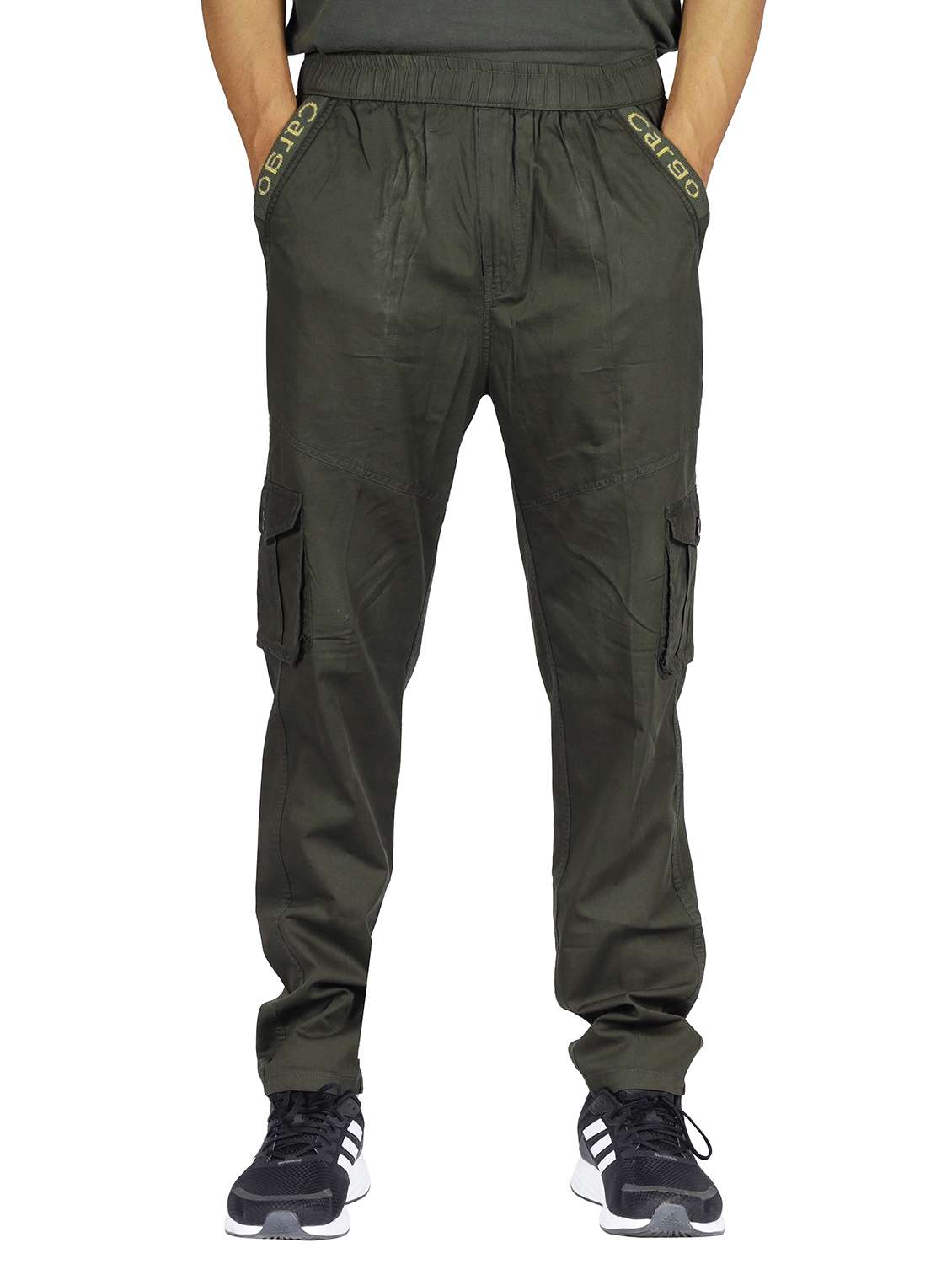 - » men mid rise solid cargos casual trousers