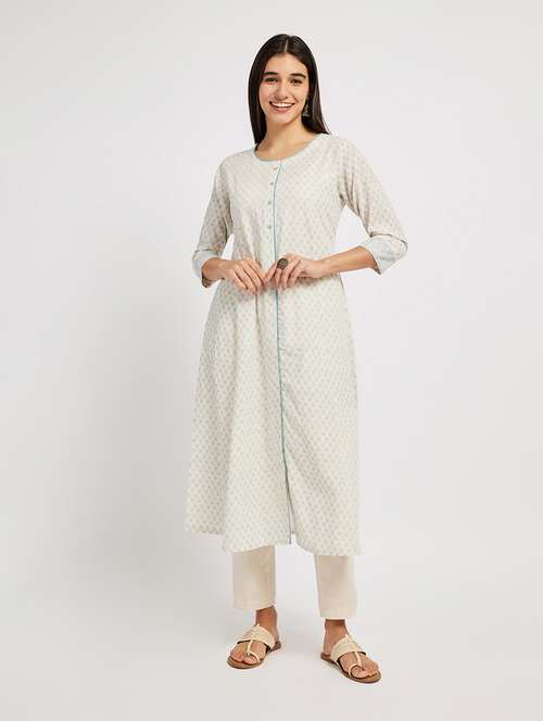 - Grab this beautiful kurta made up of cotton fabric featuring round neck designs.