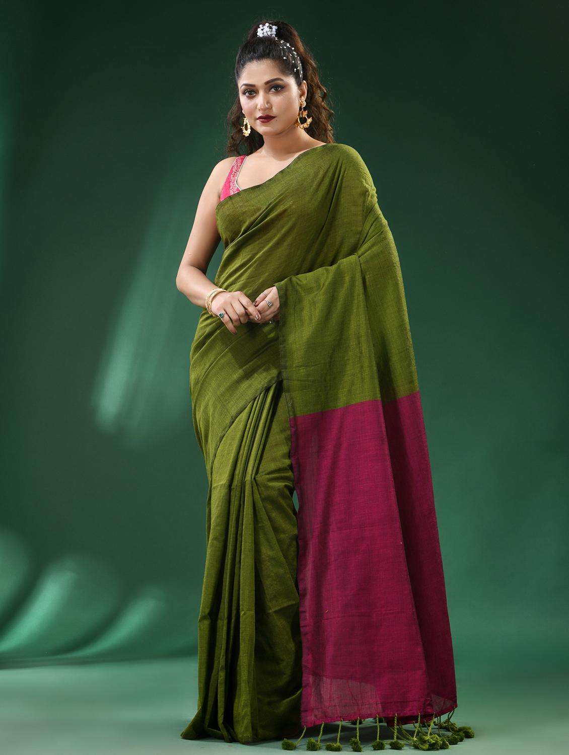 women solid handloom saree - 22260817 - Very Small Image - 1