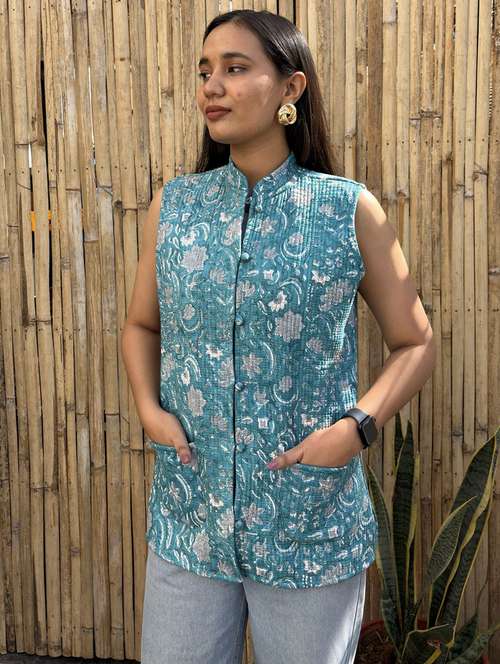 women printed mandarin neck sleeveless jacket - 22287689 -  Standard Image - 0 women printed mandarin neck sleeveless jacket - 22287689 -  Zoom Image - 0
