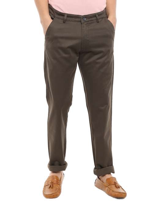 - » brown solid casual chino pants